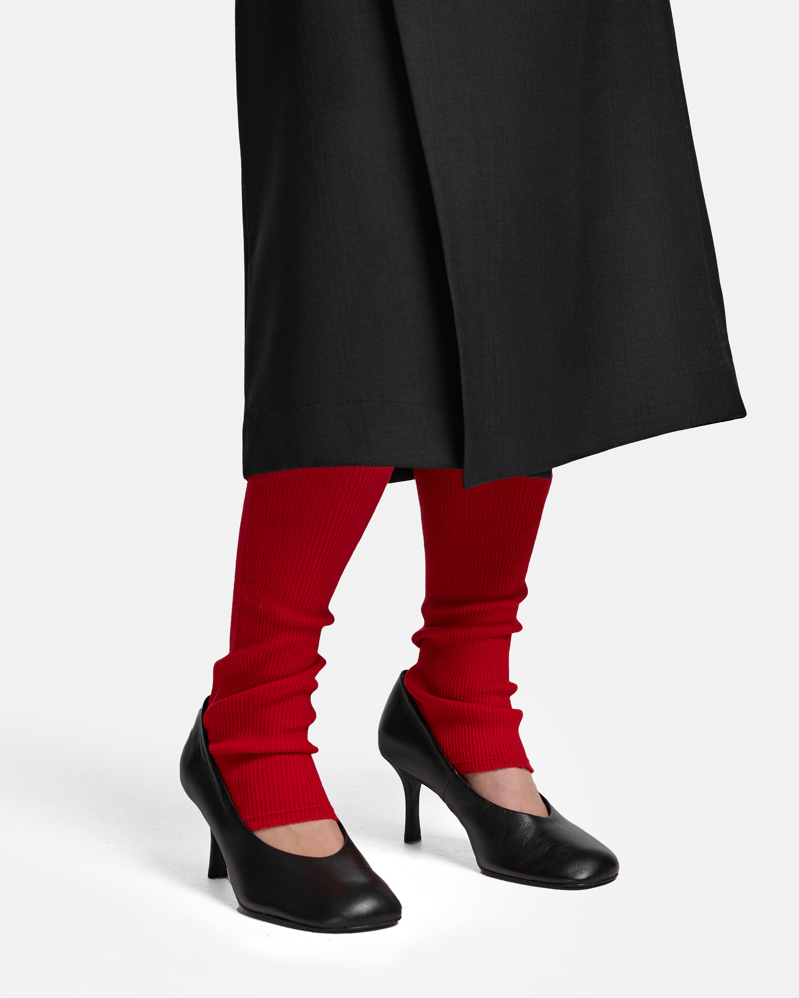 Гетры из шерсти мериноса с акцентным вертикальным силуэтом. Конструкция дополнена прорезью для каблука, что позволяет надевать их поверх обуви.