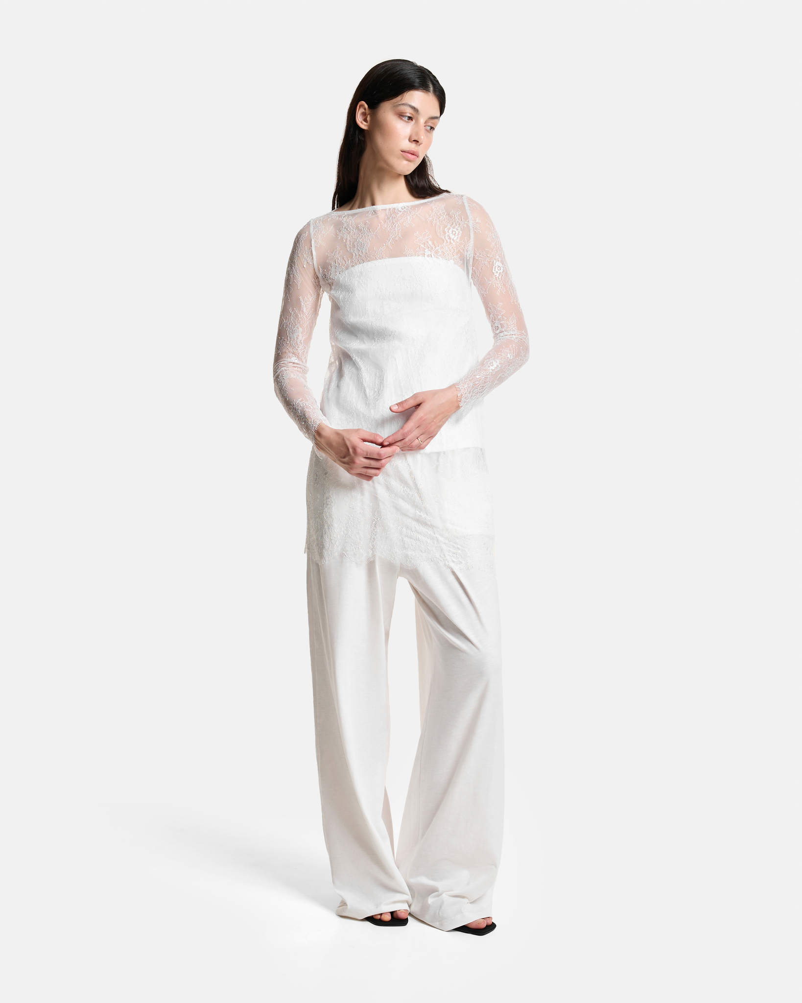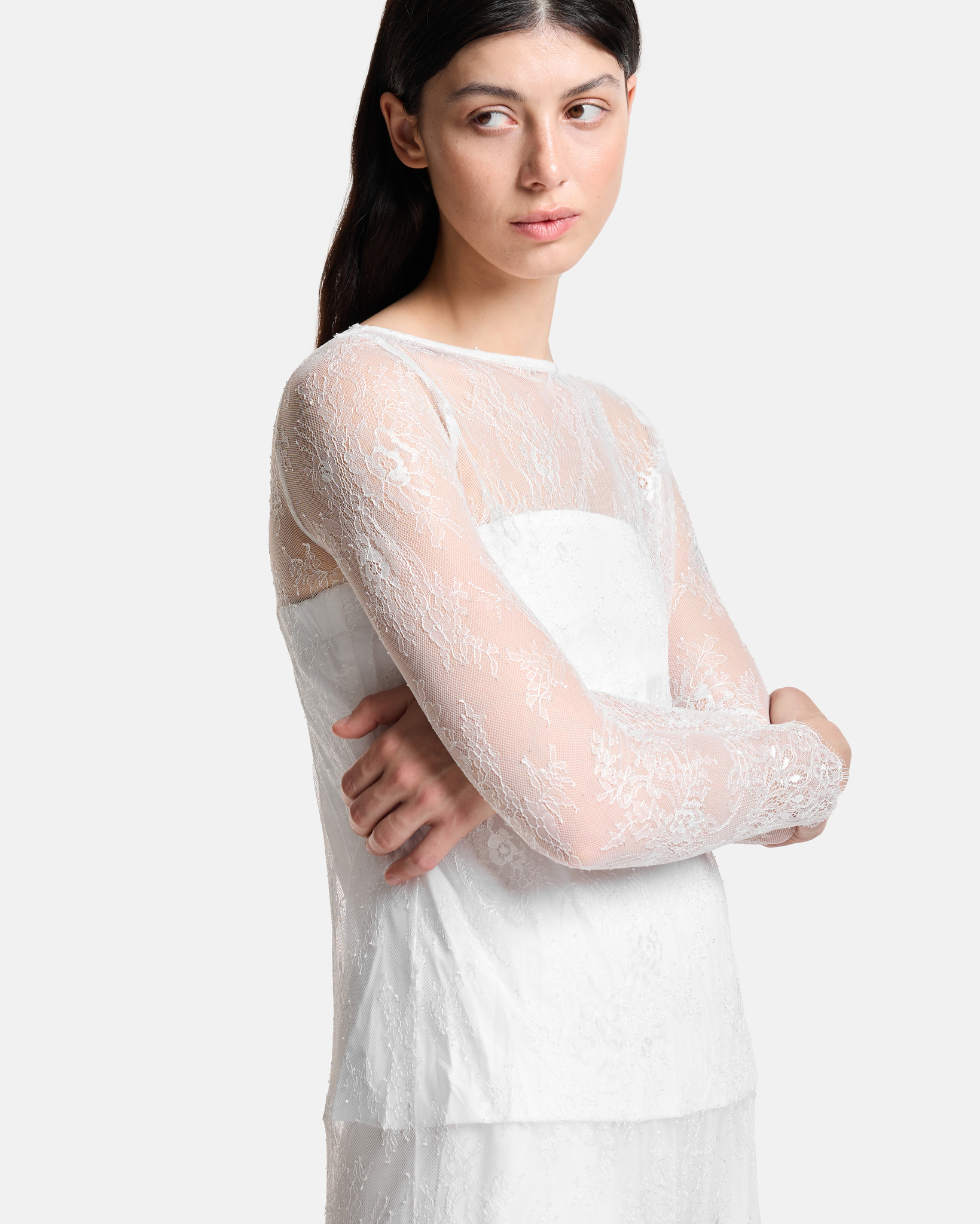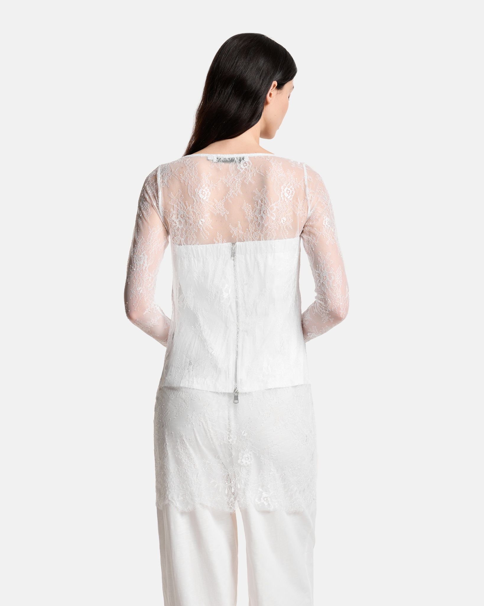 Платье-кружево с фестонами по краю изделия и на рукавах.