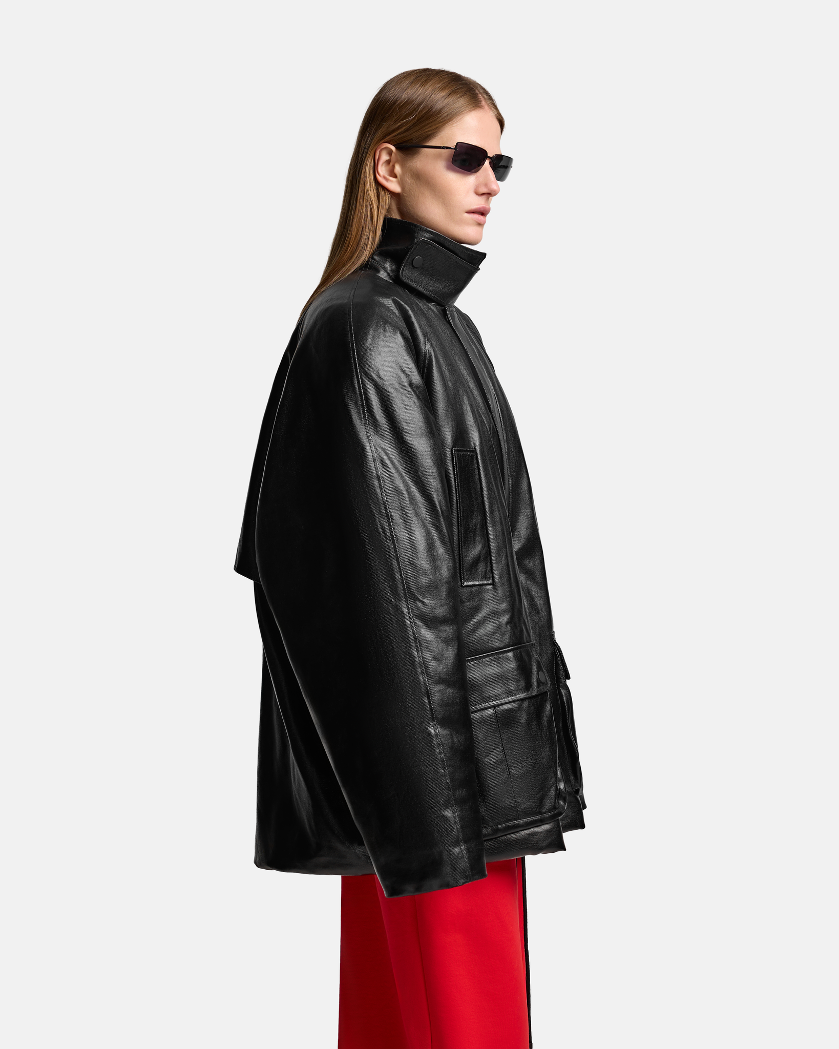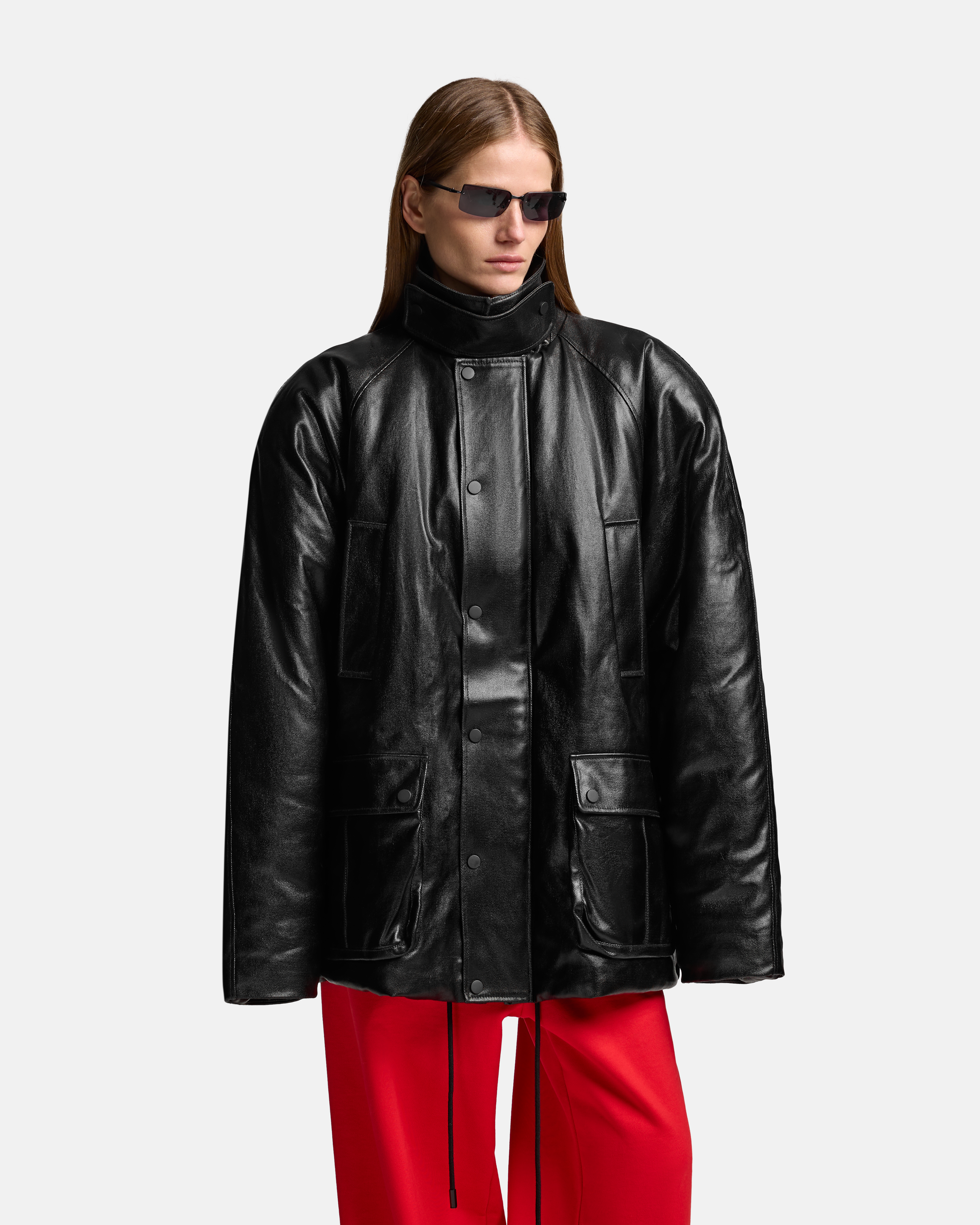 Пуховик oversize - силуэта. Изделие застегивается на молнию и кнопки, имеет четыре функциональных кармана. На горловине предусмотрен штормовик. Силуэт изделия можно приталить с помощью внутренней кулиски. Ткань пуховика имеет вощеное покрытие, которое не пропускает ветер и сохраняет тепло. В процессе носки изделие будет "жить с вами" и приобретать винтажный эффект.