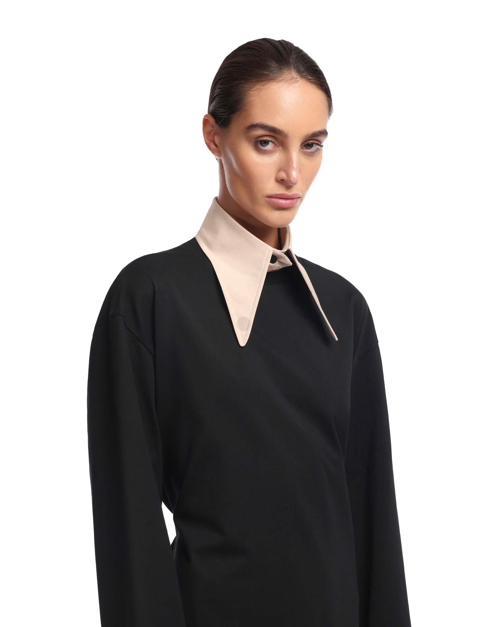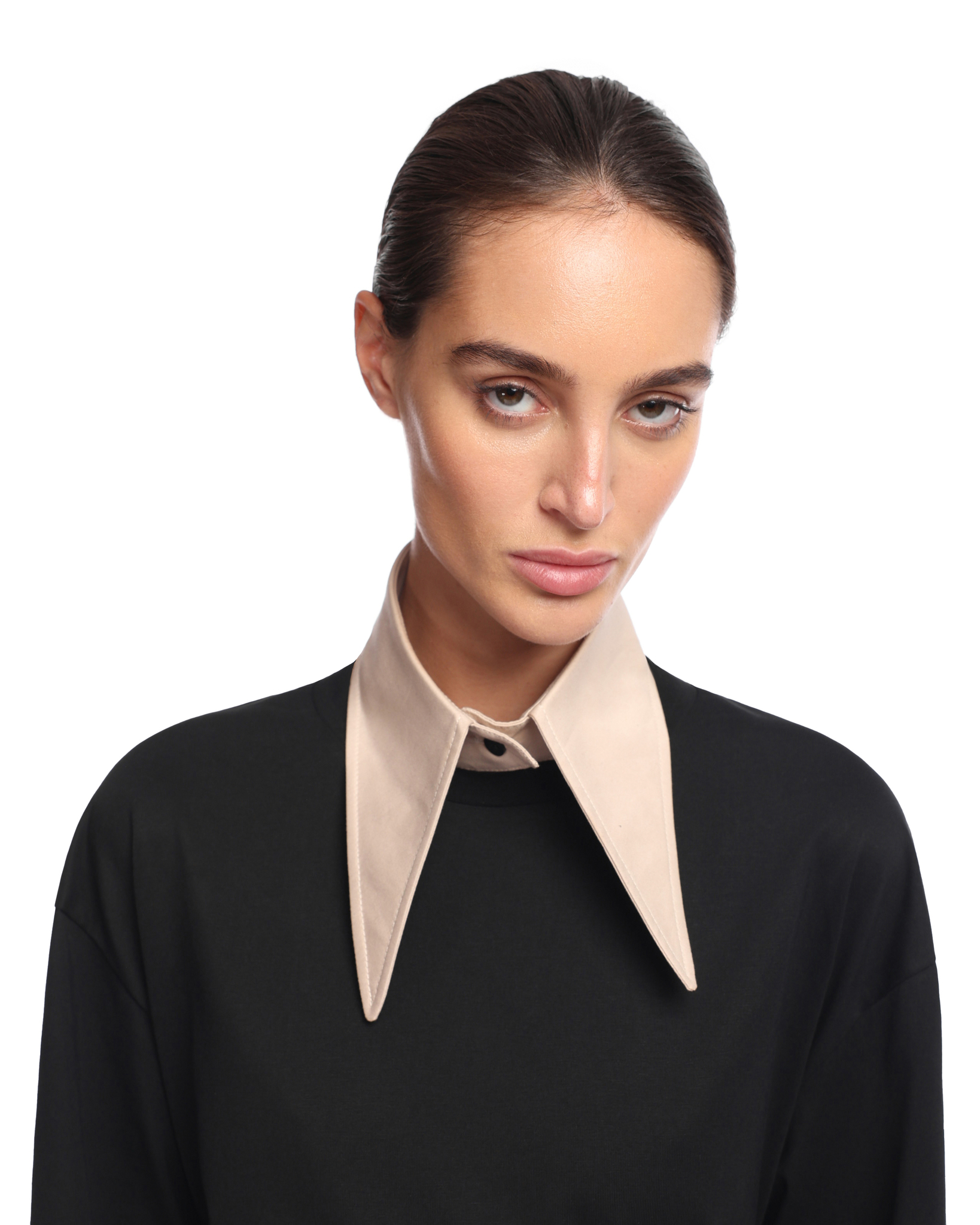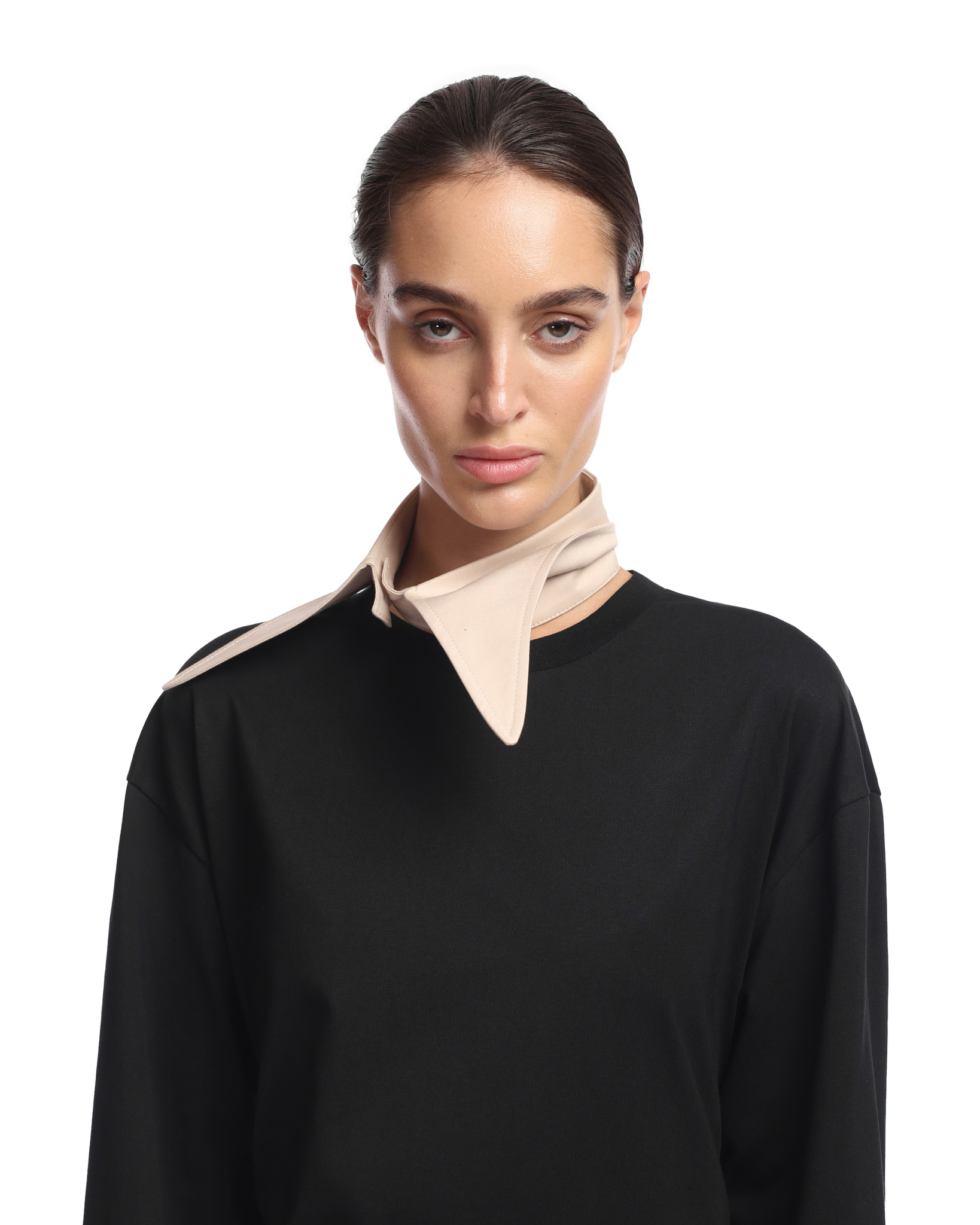 Воротник из хлопка, застегивается на брендированную пуговицу. Выполнен в трех оттенках.